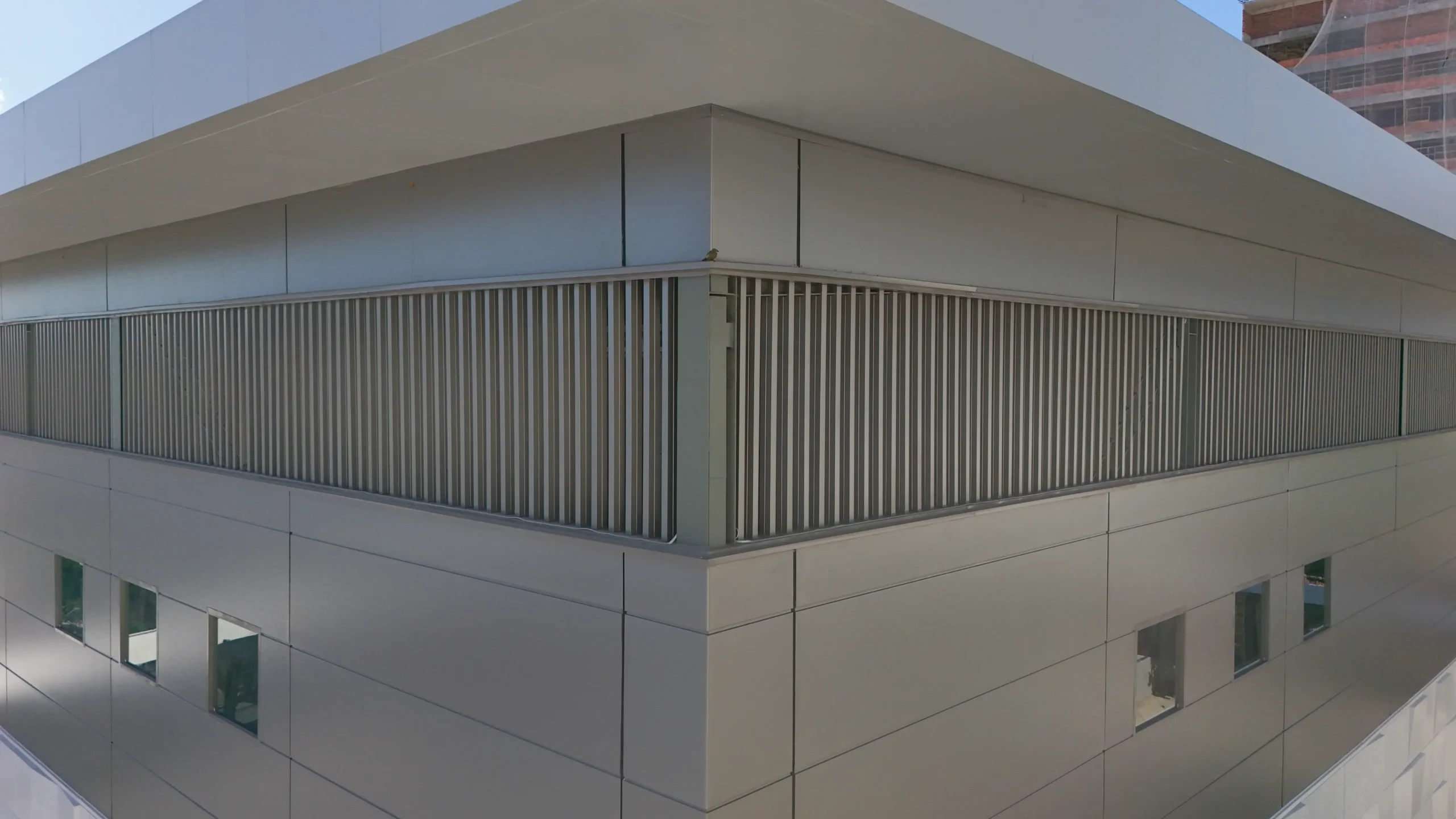Painel Evolution – Sistema que organiza os planos da fachada com linearidade e continuidade, proporcionando acabamento uniforme e leitura clara dos volumes arquitetônicos.